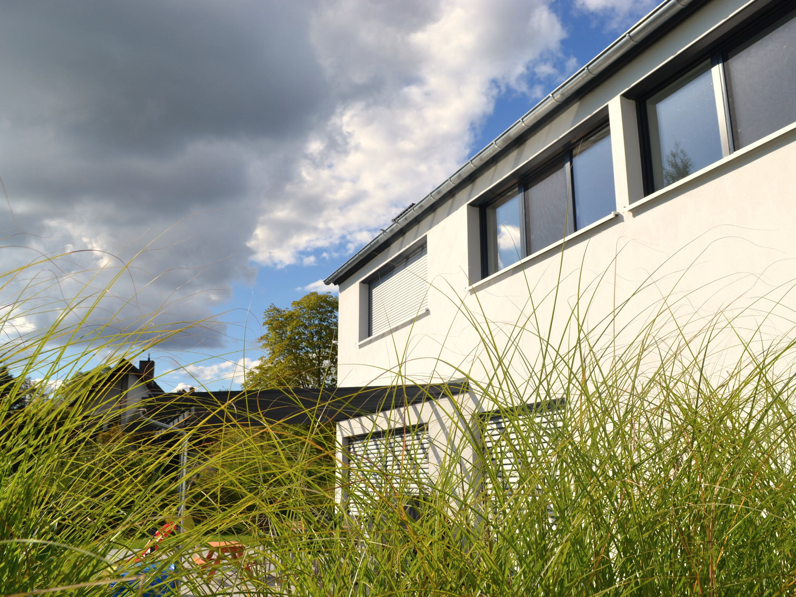 Auf dem großzügigen Grundriss wurde ein kompaktes, modernes Gebäude gebaut, welches dennoch ein großzügiges Raumgefühl schafft.