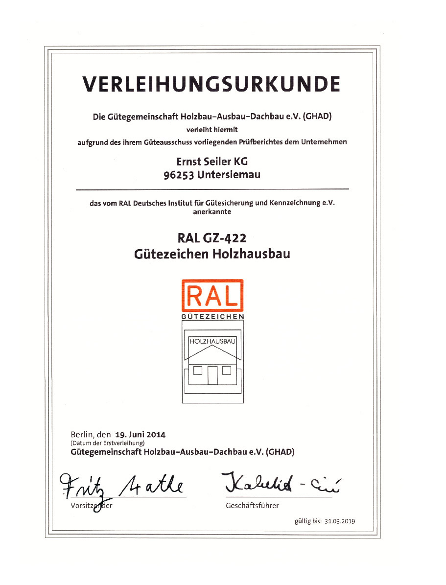 Gütezeichen Holzhausbau